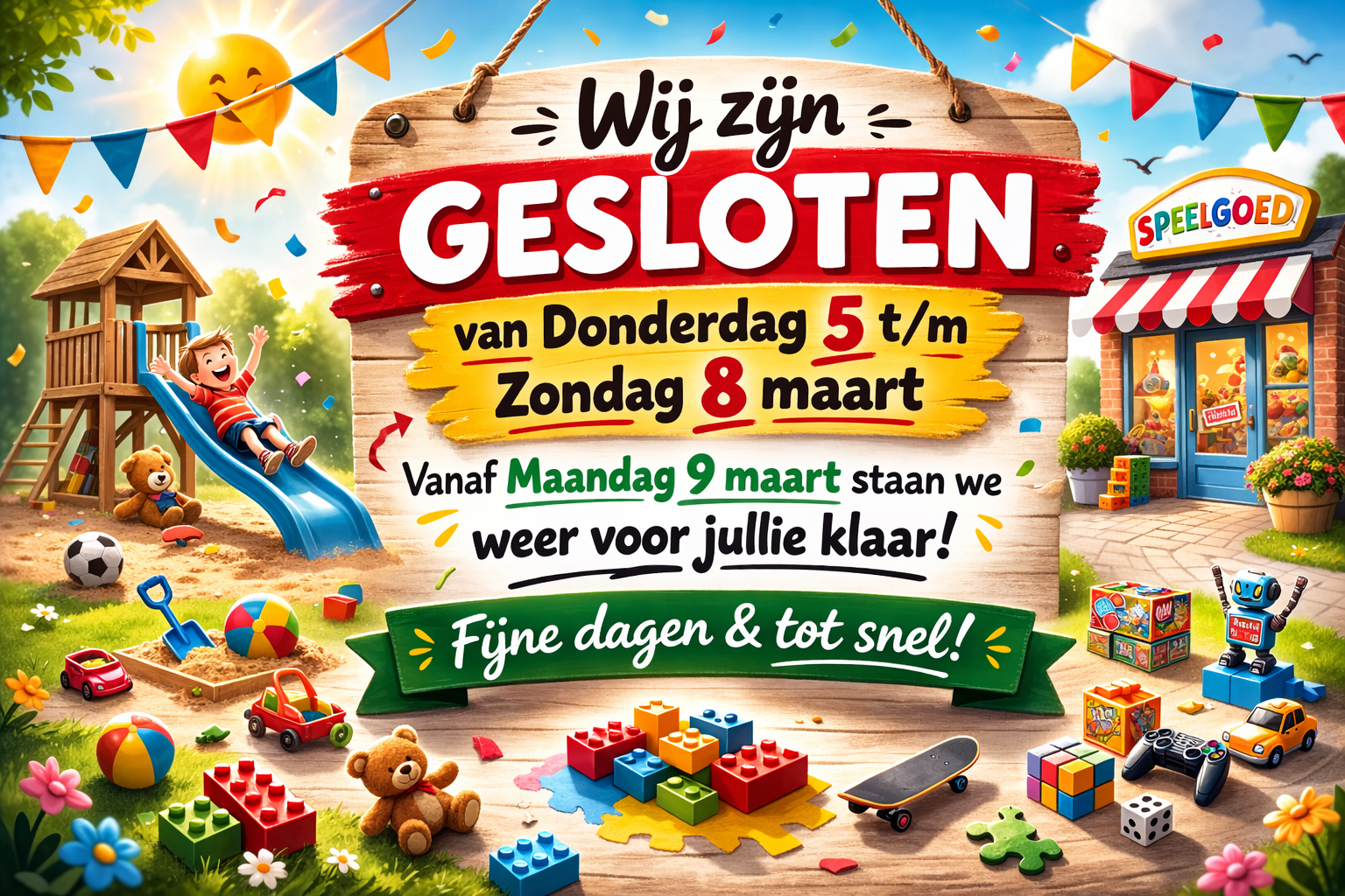 ToysGarden heeft voor jong en oud betaalbaar en duurzaam speelgoed. Met meer dan 10.000 artikelen bieden wij een uitgebreid assortiment aan binnen -en buitenspeelgoed van vrijwel alle bekende merken. Plaatst u op werkdagen voor 13:00 uur een bestelling dan wordt deze dezelfde dag verzonden. Wilt u het speelgoed liever afhalen, dan kan dit tijdens de openingstijden van onze winkel. Heeft u iets groots of zwaars besteld, dan helpen we u graag mee inladen.