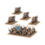 Deze multipart plastic kit bouwt 20 Dwergenmijnwerkers en vier mijnwerkerskarren, dappere tunnelstrijders uit de Dwarfen Mountain Holds. Elke mijner is gehuld in zwaar kettingharnas en draagt een mijnwerkerspik om vijandelijke bepantsering te doorbreken. De set bevat ook alle commandoupgrades die je nodig hebt, of je nu je Dwergenmijnwerkers in kleine groepjes of als één grote eenheid inzet – je kunt muzikanten, champions met optionele stoomboor en standaarddragers met keuze uit icoon of banner bouwen. De robuuste mijnwerkerskarren worden getrokken door stevige pony’s en kunnen optioneel worden uitgerust met hun eigen boor.