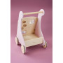 De Jabadabado Activity Wagon is de perfecte begeleider voor de allereerste stapjes van je kind. Deze houten loopwagen in een rustige, natuurlijke kleur helpt peuters op een veilige en speelse manier leren lopen.